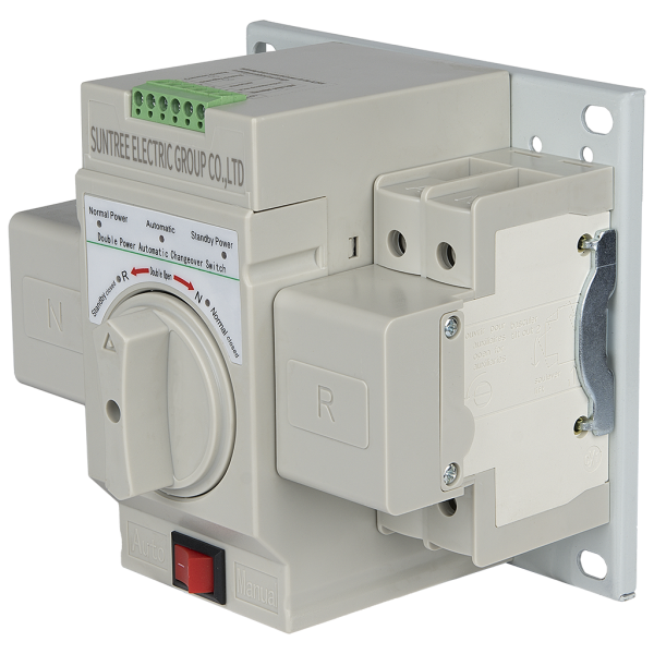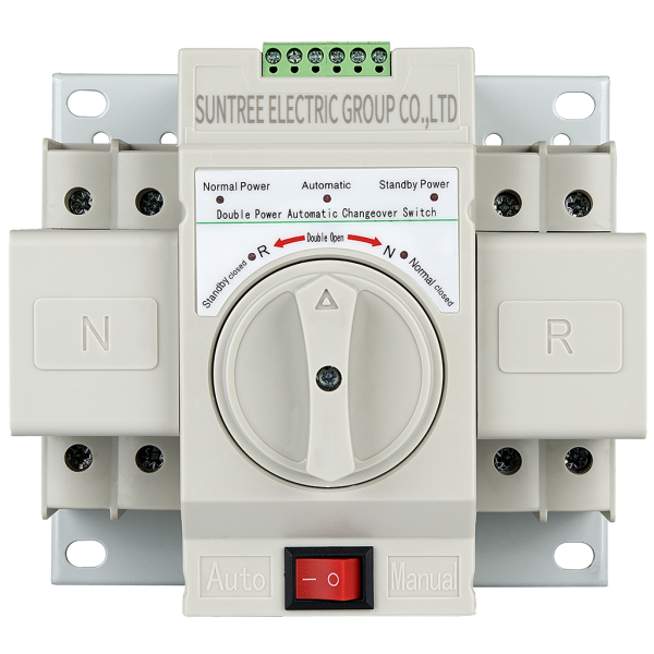 Устройство автоматического ввода резерва переменного тока, 1 фаза, 230В, 50А, 2 полюса. Применяется для непрерывной подачи питания потребителю, автоматически переключая питающие линии при пропадании фазы на одной из них.