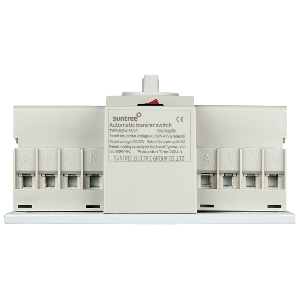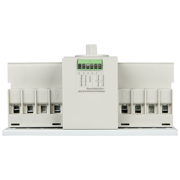 Устройство автоматического ввода резерва переменного тока, 3 фазы, 400В, 50А, 4 полюса. Применяется для непрерывной подачи питания потребителю, автоматически переключая питающие линии при пропадании фазы на одной из них.