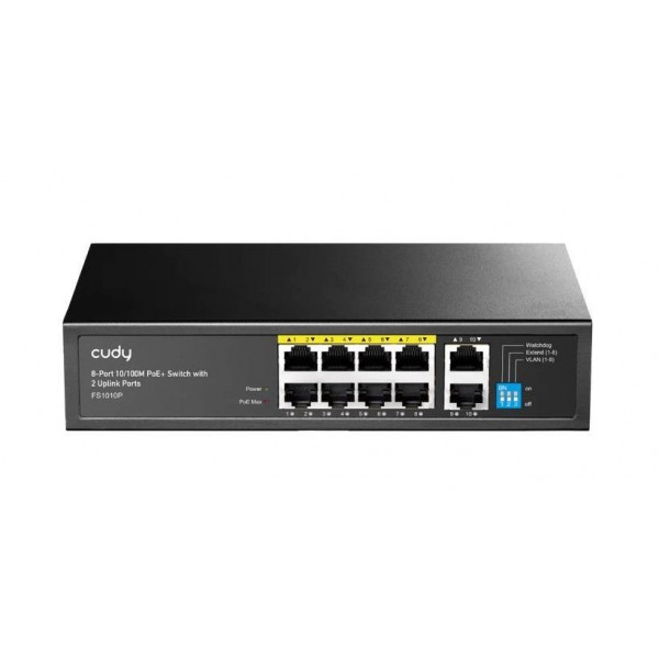 Cudy FS1010P Коммутатор с 8 портами 10/100 Мбит/с, 2 портами Uplink и поддержкой PoE+ (120 Вт)
