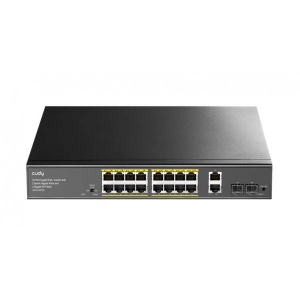 Cudy GS1018PS2 Коммутатор с 16 гигабитными портами, 2 гигабитными портами Uplink, 2 портами SFP и поддержкой PoE+