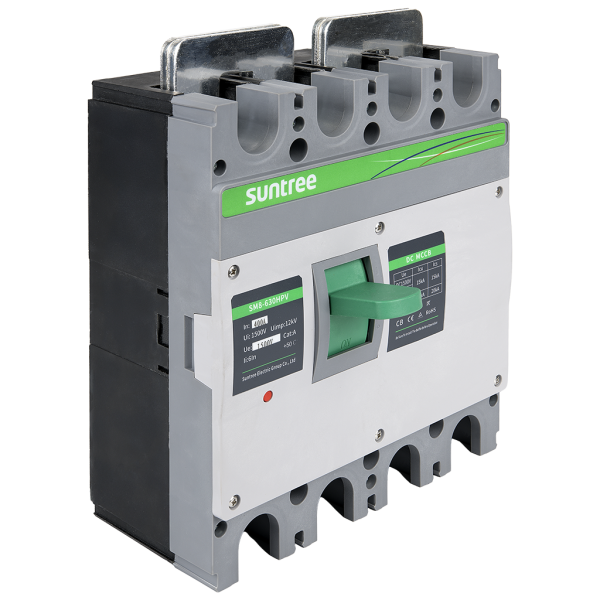 MCCB DC 1500V 4P 400A - четырёхполюсный автоматический выключатель постоянного тока в литом корпусе. Максимальный ток 400 ампер, напряжение 1500 вольт. Применяется в качестве защитного оборудования в составе солнечных электростанций. Также может применяться для размыкания цепи постоянного тока аккумуляторных сборок с соответствующим номиналом по току и напряжению.