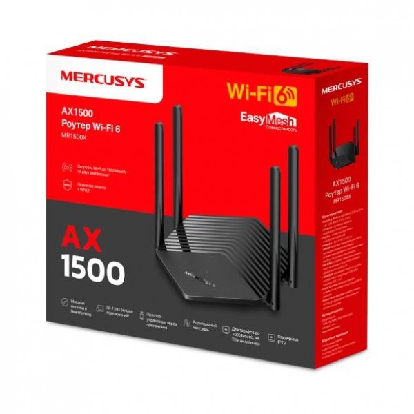 Mercusys MR1500X V2.20 Двухдиапазонный роутер Wi-Fi 6 AX1500, до 300 Мбит/с на 2,4 ГГц + до 1201 Мбит/с на 5 ГГц