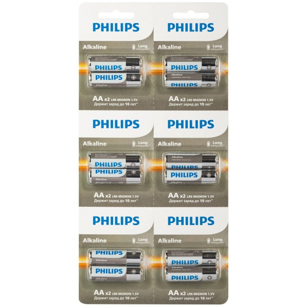 Philips Батарейки LR6A12S/51 АА алкалиновые 1,5v, LR6-2BL Entry (12/72/216/14688). Блистер 2х6 шт. арт.:Б0064636