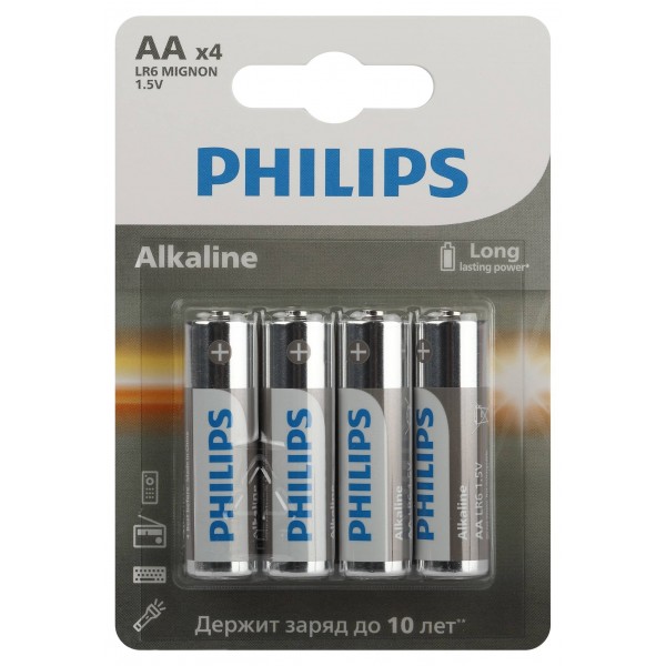 Philips Батарейки LR6A4B/51 АА алкалиновые 1,5v, LR6-4BL Entry (4/48/144/20160). Блистер 4 шт. арт.:Б0062745