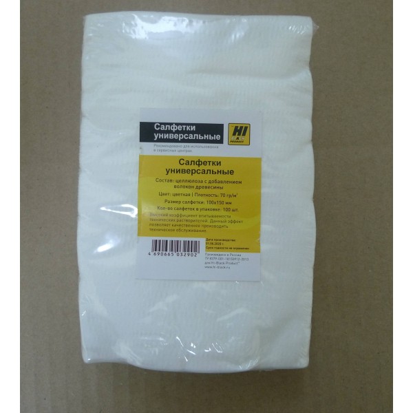 Салфетки универсальные чистящие безворсовые Hi-Black, пачка/100шт (10*15см) арт.:220824